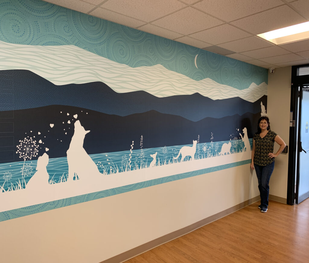 Background mural for a vet’s office over which vinyl nameplates for top donors will be added.